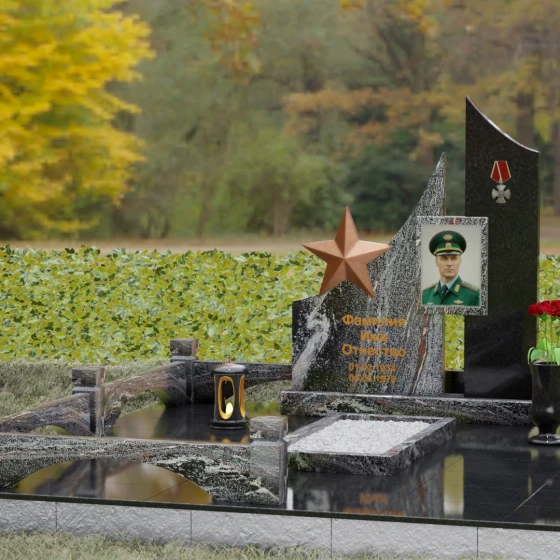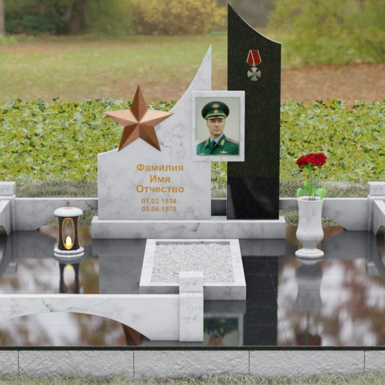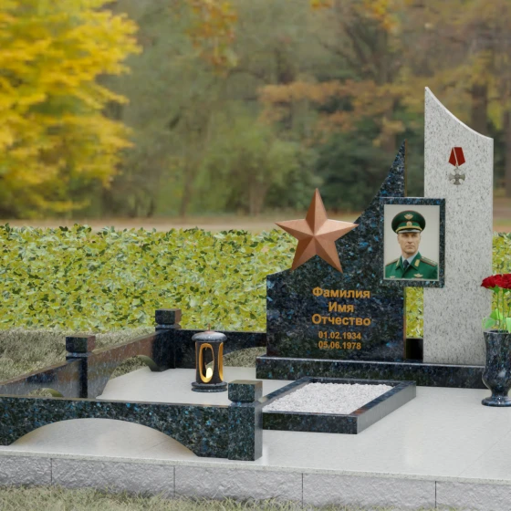 Создание достойного места упокоения — это сложная архитектурная задача, требующая баланса между монументальной строгостью и глубокой личной историей. Данное ритуальное изделие представляет собой сложную многокомпонентную композицию, призванную увековечить память о человеке, чья жизнь была неразрывно связана со служением, честью и доблестью. В каждой линии этого ансамбля читается преемственность поколений и непоколебимость духа, а использование благородных пород камня гарантирует сохранность мемориала на многие столетия.