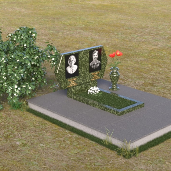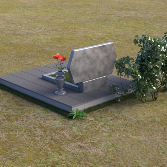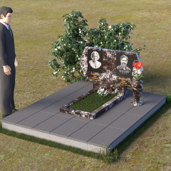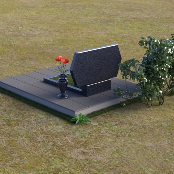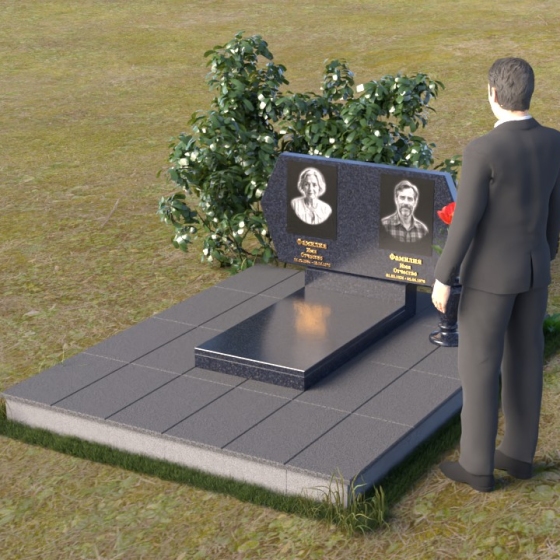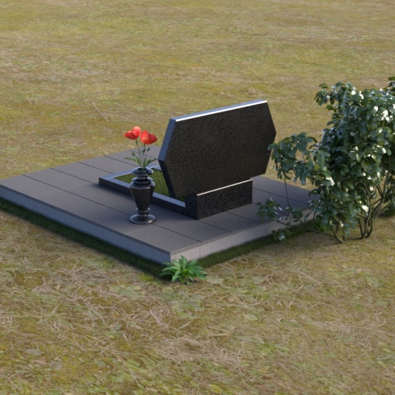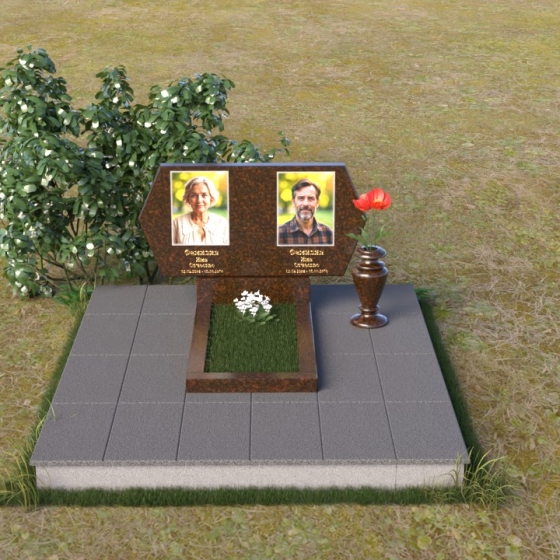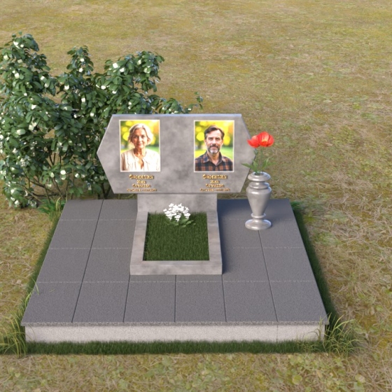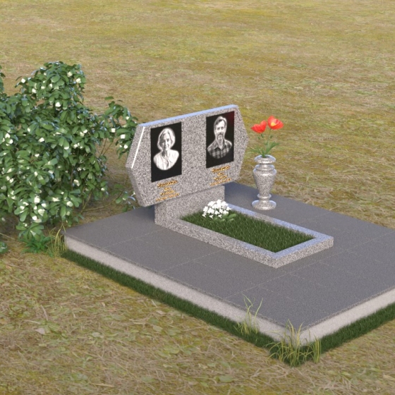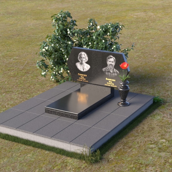 Величественная стела памятника ПГ004 представляет собой элегантное сочетание строгих линий и мягких, сглаженных углов. Верхняя часть имеет форму, близкую к прямоугольнику, но с деликатно скошенными верхними углами, что придает ей визуальную легкость и утонченность. Боковые грани плавно переходят в лицевую поверхность, создавая ощущение обтекаемости и завершенности. Фаска по периметру лицевой стороны подчеркивает четкость контура и добавляет дополнительный объем. Нижняя часть стелы, служащая основанием для размещения информации и портретов, выполнена в форме прямоугольной призмы, гармонично сочетающейся с основной частью памятника. Подставка под вазу выполнена в классическом стиле и имеет плавные обтекаемые формы.
