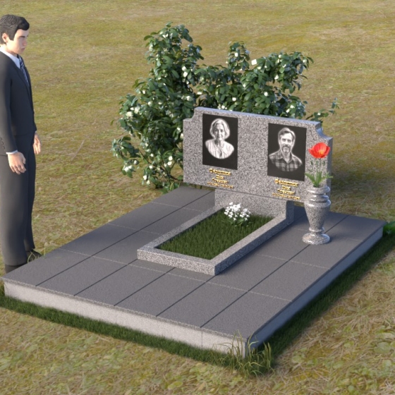 Оформление: Для этой формы стелы идеально подойдет гравировка портретов в овальной или прямоугольной рамке. Имена и даты жизни можно расположить под портретами, используя золотой или серебряный шрифт. Дополнительно можно добавить эпитафию, выражающую любовь и скорбь. Не перегружайте композицию лишними деталями – лаконичность и сдержанность подчеркнут достоинство и элегантность памятника.