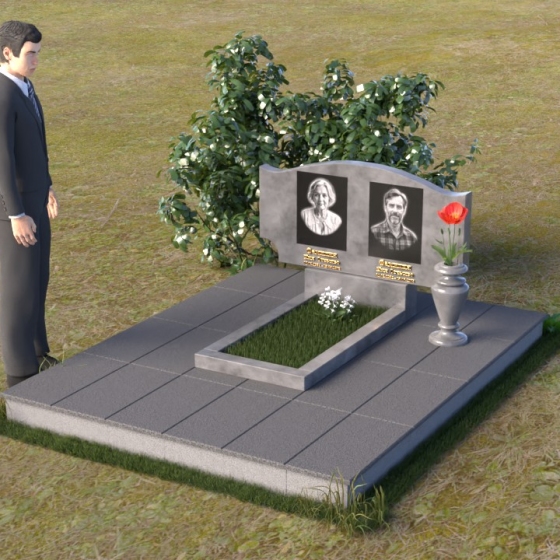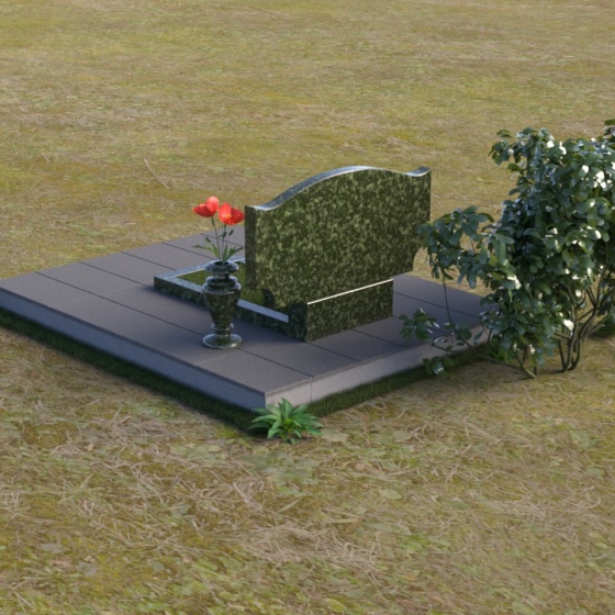Этот гранитный монумент привлекает внимание своей плавной, обтекаемой формой. Верхняя часть надгробного сооружения представляет собой дугу с легким изгибом, напоминающим колыбель или волну, бережно укрывающую покой. Боковые грани скруглены, что придает памятнику мягкость и умиротворенность. Фаска, аккуратно снятая по периметру, подчеркивает четкость линий и добавляет изделию изысканности. Нижняя часть монумента выполнена в форме прямоугольника, создавая устойчивое основание и визуальный баланс. Дополнительная горизонтальная плита, расположенная на основании, добавляет композиции завершенность и предоставляет место для нанесения эпитафий или размещения цветов.