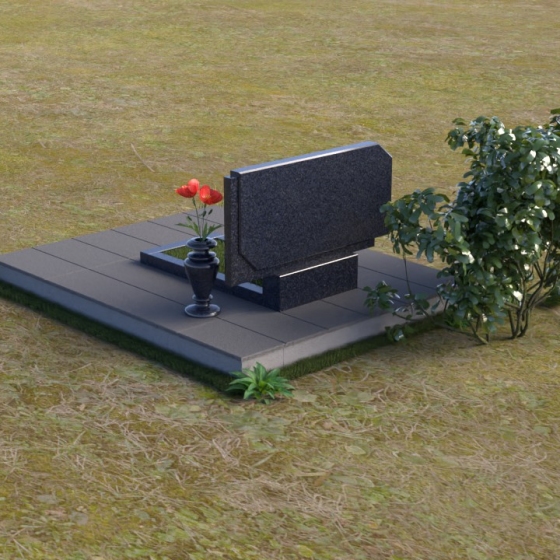 Конструкция памятника состоит из нескольких элементов, гармонично сочетающихся друг с другом. Основание памятника выполнено в виде прямоугольной плиты, облицованной серыми гранитными плитами, что обеспечивает устойчивость и надежность всей конструкции. На основании установлена тумба, также выполненная из черного полированного гранита. На тумбе располагается горизонтальная плита, создающая дополнительное пространство для цветов или памятных вещей. Завершает композицию ваза из черного гранита, расположенная рядом со стелой, добавляя завершенность и элегантность всему ансамблю.